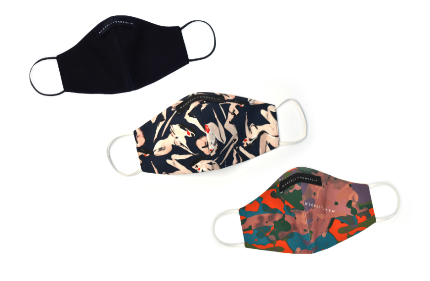 MARCELL VON BERLIN face masks are made out of tightly woven double layered textiles by up-cycling previous collection fabrics.