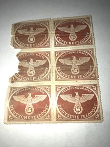 Here are 6 STAMPS VINTAGE GERMAN ZULASSUNGSMARKE DEUTSCHE FELDPOST. German Stamp Value Catalog - Deutsches Reich. Adolf Hitler April 20th 1889 - April 30th 1945 The Fuehrer and Reich Chancellor of Germany 1933-1945 - DICTATOR.