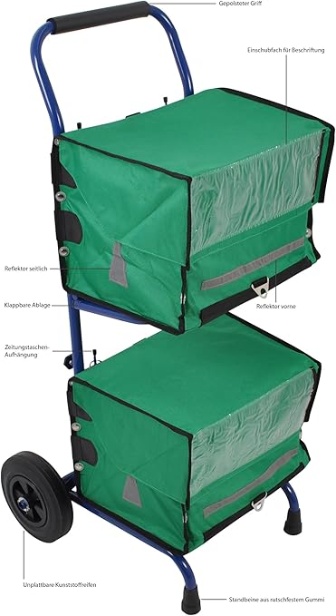 Paperlino Zeitungswagen Zeitungsroller Mit Rollen Und 2 Grunen Zeitungstaschen Zeitungstaschen Eignen Sich Fur Zeitungswagen Und Fahrrad Amazon De Kuche Haushalt