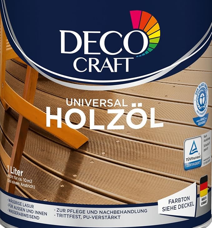 DECO CRAFT Universal Holzoel Wenn du an aehnlichen Angeboten interessiert bist lohnt es sich auch in verwandten Themen wie Heimwerken Bau Farben Lacke Chemikalien Holzschutz Oel Lasur zu stoebern. Terrassen Gartenmoebel Zaeune - Offenporiger Wetterschutz - Auf Leinoelbasis Farbton Verfuegbarkeit Anz. Schnaeppchen-Pflege fuer Holzterrasse und -moebel Erst absichern dann kaufen mit Testberichtede.